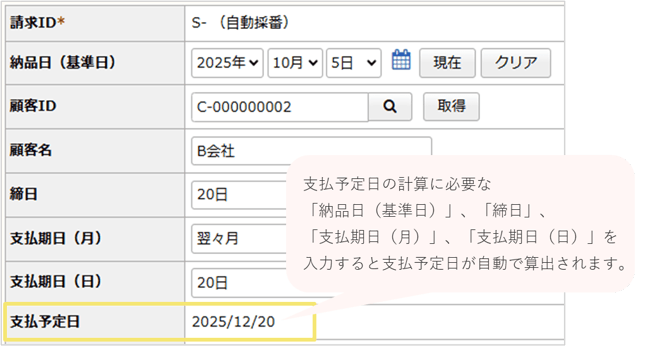 支払日や入金予定日などの期日を自動で算出できるようになります。